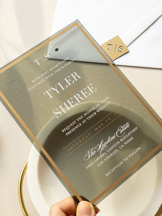 Frame'd Collection | Semi-Custom Clear Acrylic Invitations • Black & Gold