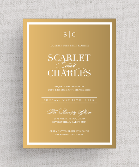 The Frame'd | Modern, Acrylic Gold Mirror Wedding Invitation