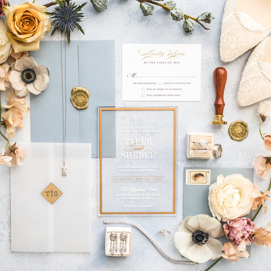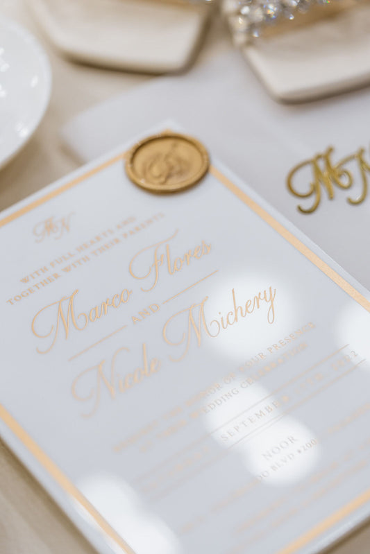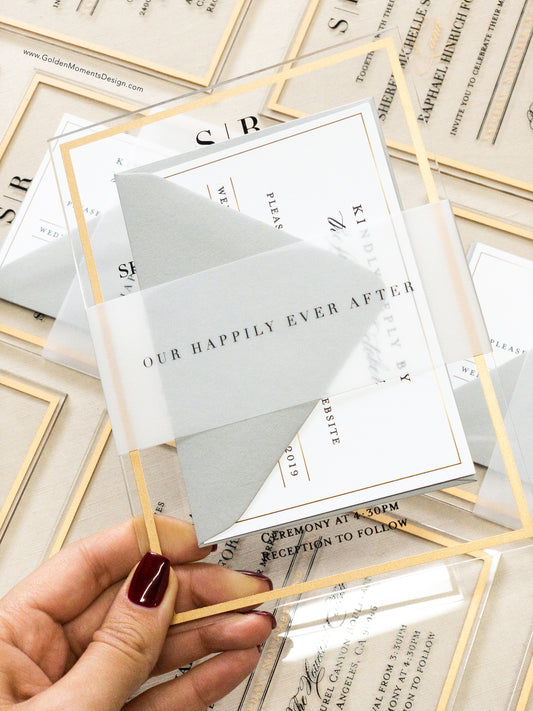 Frame'd Collection | Clear Acrylic Wedding Invitations • Gold & White