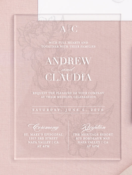 Melrose | Peony Floral Frosted Acrylic Wedding Invitations