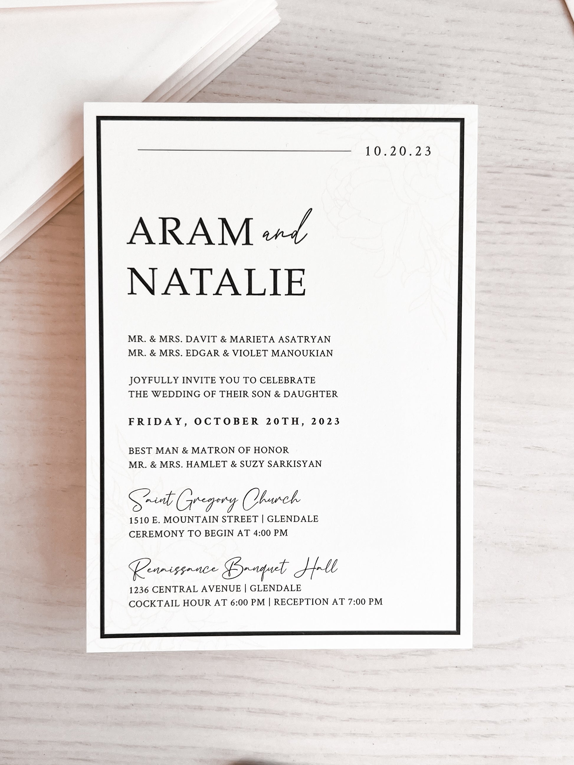 The Modern Script Collection features watermark peony florals in the background. This invitation is printed on premium card stock. These customizable, hand-made, high-quality invitations are perfect for weddings, birthdays, anniversaries, baby showers, or any other celebration.