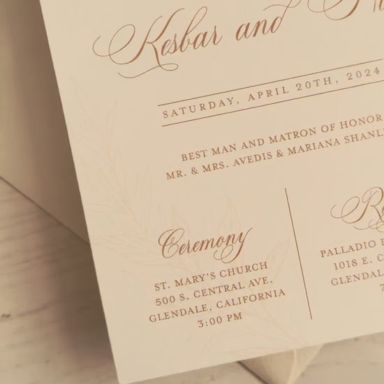 The Summer Branches Collection features elegant, nature-inspired invitations. This invitation is printed on premium card stock. These customizable, hand-made, high-quality invitations are perfect for weddings, birthdays, anniversaries, baby showers, or any other celebration.
